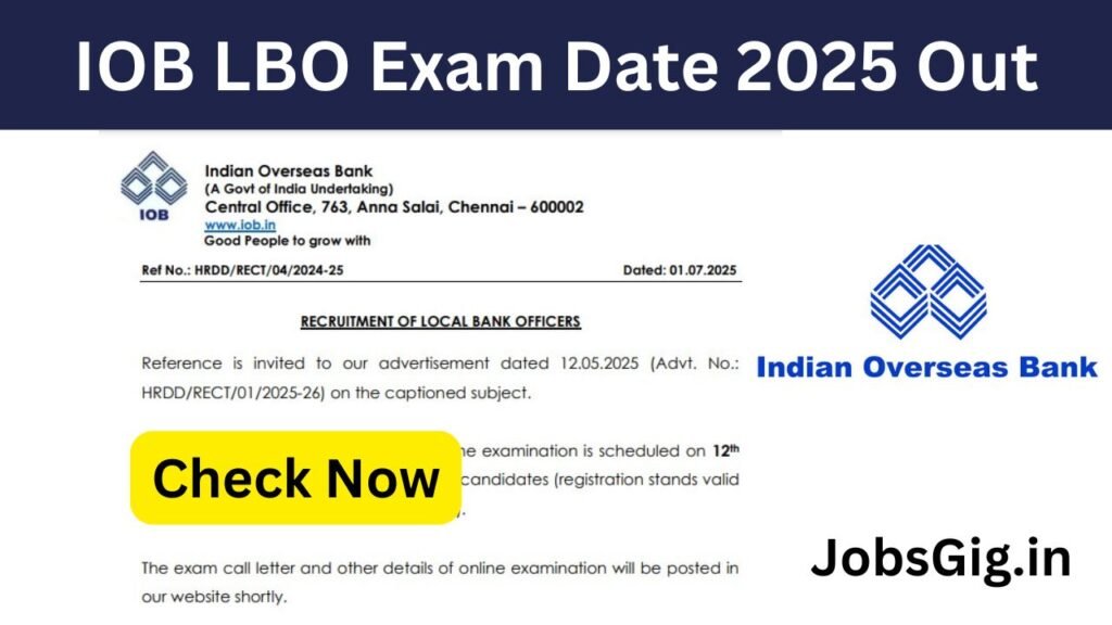 Indian Overseas Bank (IOB) has announced the exam date of Local Bank Officer (LBO) Recruitment 2025. Yes, as per the official notification, the IOB LBO exam will take place on 12th July 2025, which is a Saturday. This is an important update for all the candidates who have applied for this prestigious post.